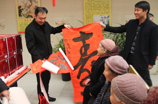 “酒香夢(mèng)甜 翰墨溢彩”。心心酒業(yè)聯(lián)合任城區(qū)民政局、任城區(qū)慈善總會(huì)、任城區(qū)書法家協(xié)會(huì),共同舉辦“迎新春送祝福大型系列文化敬老活動(dòng)”。